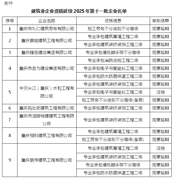 附件:建筑业企业资质延续2025年第十一批企业名单