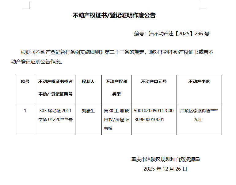 刘忠生涪不动产注(2025)296号