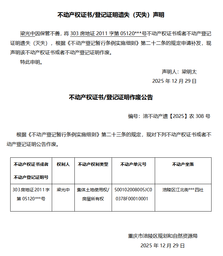 梁光中涪不动产遗【2025】农308号