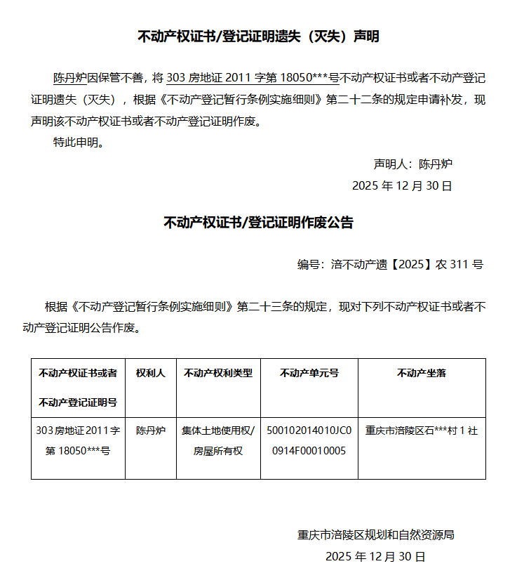 陈丹炉涪不动产遗【2025】农311号