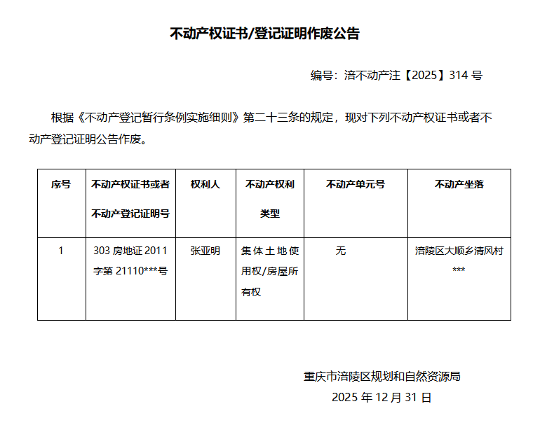 张亚明涪不动产注(2025)314号