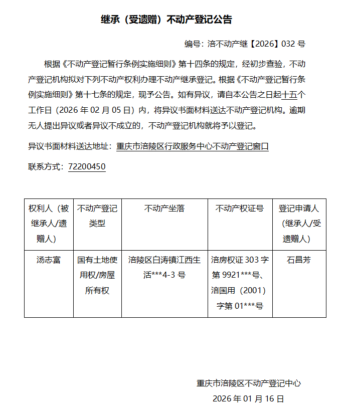 汤志富涪不动产继【2026】032号