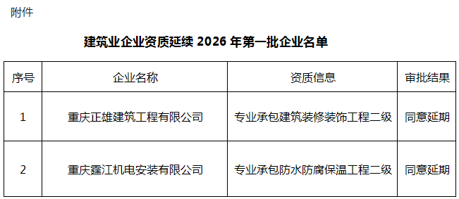 附件:建筑业企业资质延续2026年第一批企业名单