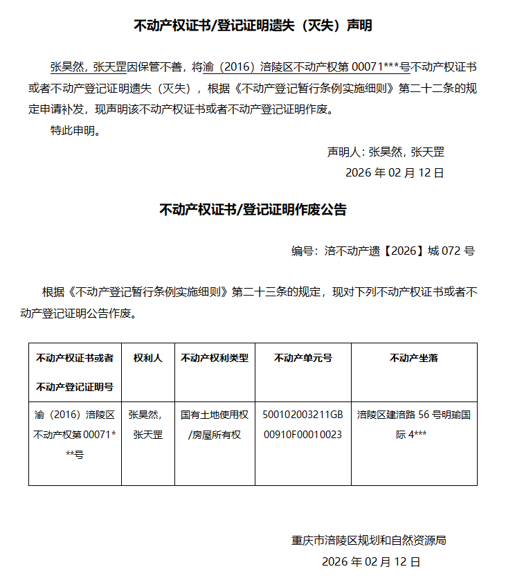 张昊然,张天罡涪不动产遗【2026】城072号