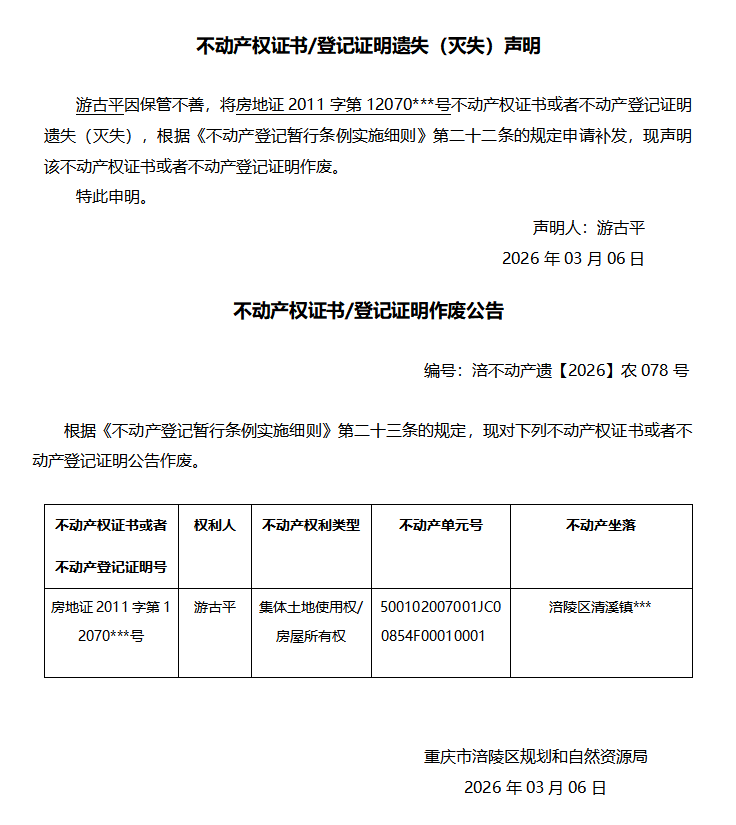 游古平涪不动产遗【2026】农078号