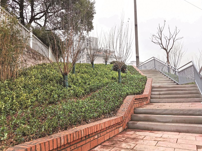 涪陵区园林绿化服务中心有关负责人介绍,青龙嘴社区体育文化公园的前身是一处面积9000多平方米的荒山坡,附近居民在此圈地种菜,加之缺乏管理,导致垃圾成堆,环境十分恶劣。为促进全民健身,助力城市品质提升,涪陵区园林绿化服务中心于2021年10月底启动了涪陵区社区体育文化公园项目建设。在场地营造方面,公园利用场地内原有的大边坡,运用园林手段栽植了桂花、栾树、香樟、桢楠、碧桃、美人梅、茶梅等乔木和灌木景观,并安装了扭腰器、平步板、漫步机、肩关节康复器等健身器材,打造集休憩、玩耍、轻运动于一体的社区公园。该公园于2月中旬建成向市民开放,曾经脏乱差的荒山坡变为舒适的休闲地。
