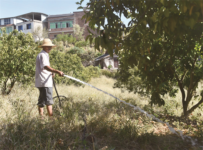 持续多日的高温天气让许多果树很“受伤”。为有效抗击旱情,使果树度过关键生长期,涪陵区珍溪镇的果农们不等不靠,积极开展生产抗旱自救,忙着引水抗旱给果树“解渴”。