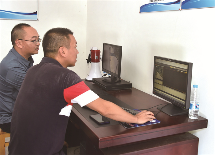 白涛街道风门丫森林防火检查站,工作人员查看监控