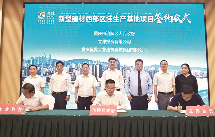9月13日,涪陵区政府与立邦投资有限公司、重庆恒昇大业建筑科技集团有限公司签订新型建材西部区域生产基地项目合作协议。区委书记王志杰见证签约,区委副书记、区政府区长刘忠致辞,立邦投资有限公司副董事长、立邦中国供应链管理总部高级副总裁邢荣华致辞,重庆恒昇大业建筑科技集团有限公司董事长吕剑见证签约,区领导钟涛、冯星贵、胡涛参加。