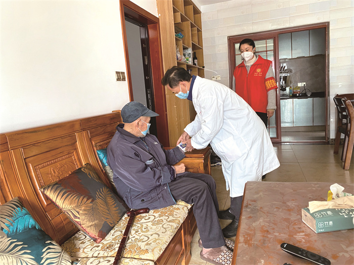 医生上门给蔺市街道川祖庙社区龙门小镇小区居民王大爷诊治