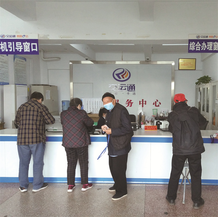 市民在兴华东路公交首末站交运通IC卡服务中心办理业务