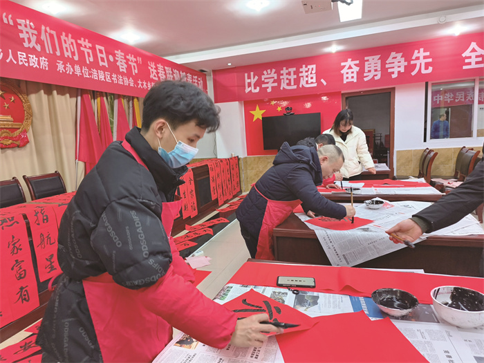 近日,涪陵区文联组织区书法家协会志愿者走进大木乡,开展送春联迎新春活动。