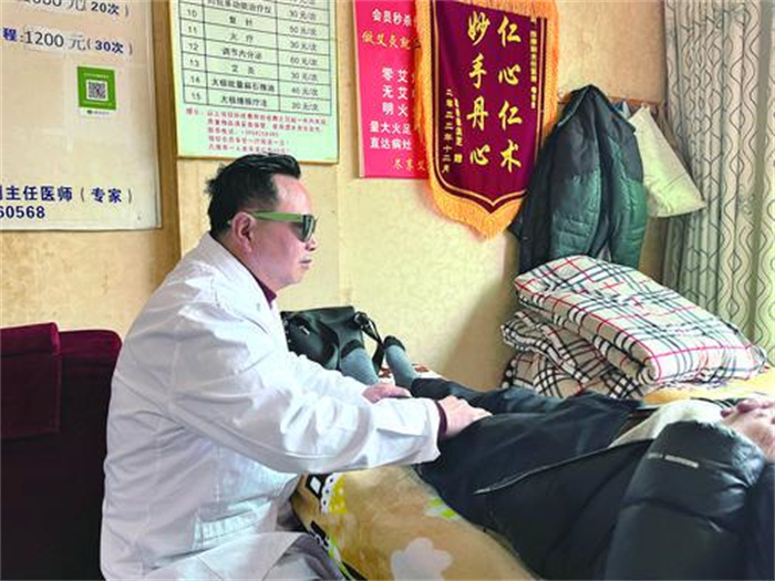 “师傅待我如亲儿。”喻吉贵的关门弟子张跃感慨道:“我从小就失明,感觉人生没有什么方向,后来跟着师傅学了一门手艺,能为病人减轻痛苦,我觉得很幸福,找到了人生的价值。”