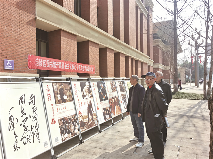 3月5日,区图书馆在该馆大门前举办社会主义核心价值观教育实践活动——“学习雷锋好榜样,弘扬雷锋精神”图片展,吸引过往市民驻足观看。