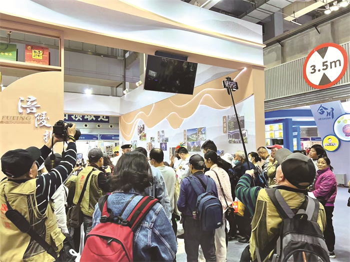 在涪陵文旅馆内,武陵山大裂谷景区、816工程景区、白鹤梁水下博物馆、美心红酒小镇景区、菜乡结绳、渝妹子小食、辣妹子榨菜、蔺市醋、惠有礼食品等特色景区和文创企业集体亮相,以抽奖互动、体验手工、派发礼品等形式,将富有涪陵特色的地方美食、文创产品进行推介,为观众开启了一场别开生面的逛展之旅。