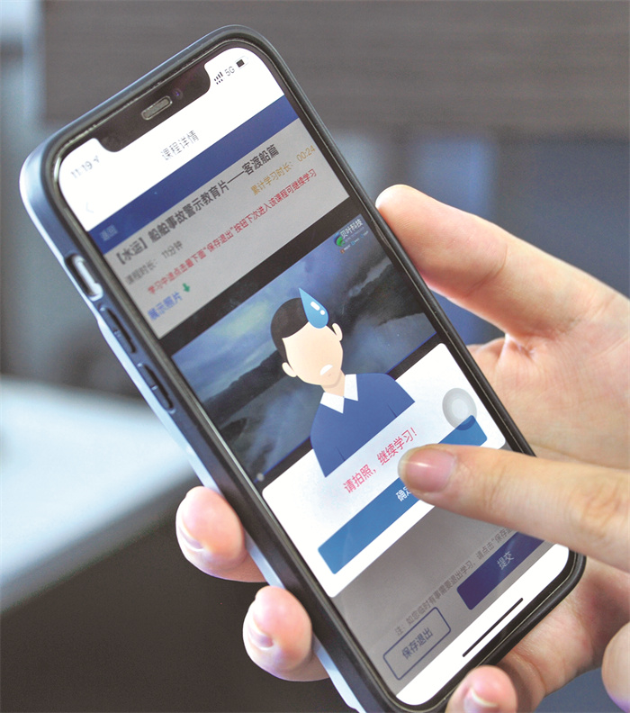 船员使用手机APP进行安全教育学习