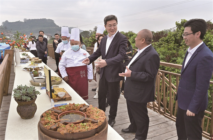 4月26日,“涪陵百味”地方美食评选品鉴活动在江北街道二渡村举行。区委书记王志杰到现场参观考察,区领导阳森、靖开媛、刘加胜参加。