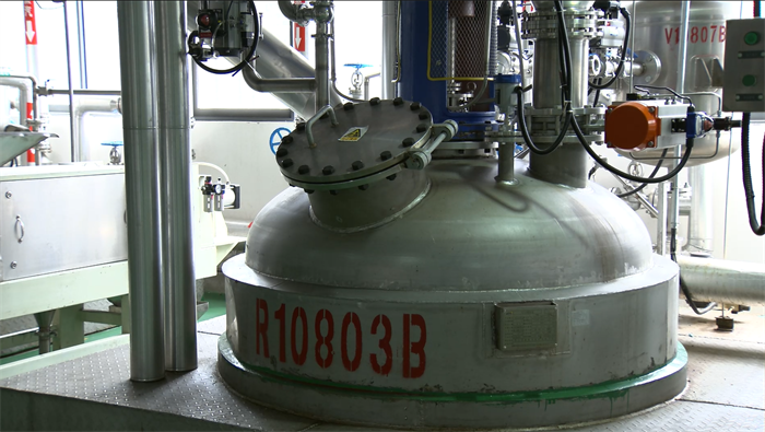 原料在反应釜里进行“机械翻炒” 记者 田昊鹰 摄