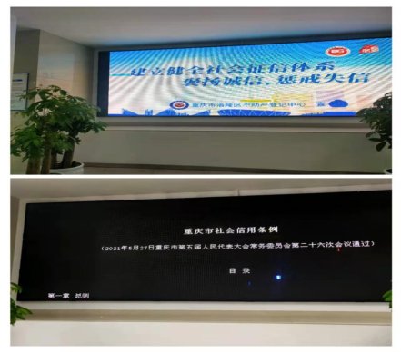 活动中,区不动产登记中心将《重庆市社会信用条例》《失信行为纠正后的信用信息修复指南》《重庆市规划和自然资源局关于在不动产登记中推行证明事项告知承诺制有关工作的通知》等规章制度在办事大厅显示屏进行轮播,在群众中进行广泛宣传。登记中心还制作诚信建设宣传手册,向办事群众进行发送,倡导其要诚信办事,办理不动产登记业务时要提供真实材料,不能违背诚信提供虚假材料申请不动产登记,并告知其使用虚假材料申请登记的后果,使广大群众深刻体会诚信办事对居民生活的重要性。