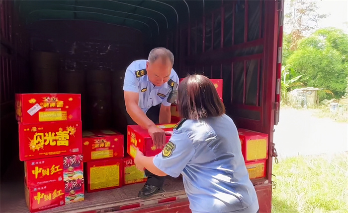执法人员转运扣留的非法烟花爆竹