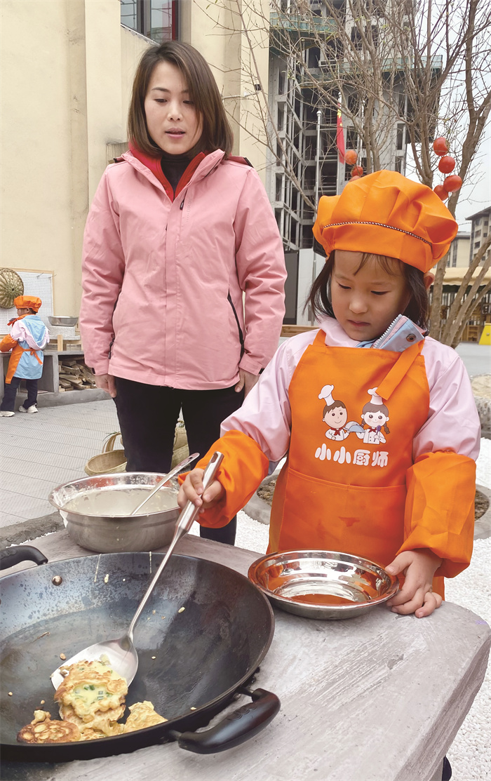 涪陵区机关幼儿园观澜园小朋友制作葱油鸡蛋饼