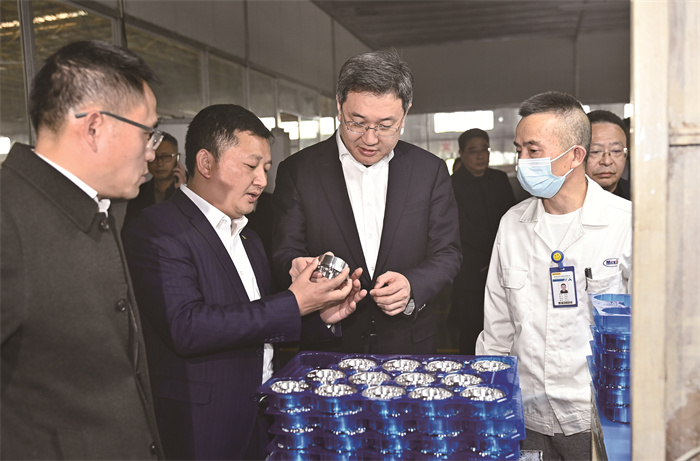 数控机床刀具飞转、传输纽带运转不停,复工复产后,美心翼申的车间一派繁忙有序的景象。王志杰鼓励企业积极开拓国内和国际市场,与行业龙头企业拓展产业链协作领域,抢抓智能网联新能源汽车不断迭代升级的新赛道,持续增强高质量发展的内生动力。来到万凯新材料公司,王志杰详细了解企业复工复产、产品销售等情况,鼓励企业持续扩建产能,持续补链延链强链,以跃进之姿更好展现新年新气象。