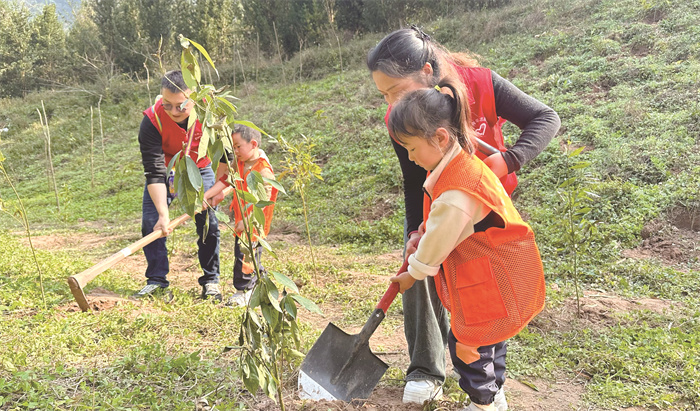3月11日,共青团涪陵区委组织80余名“林小青”青年志愿者和20组“小涪星”亲子家庭,在荔枝街道平安村开展“约上春山·植此青绿”义务植树志愿服务活动。