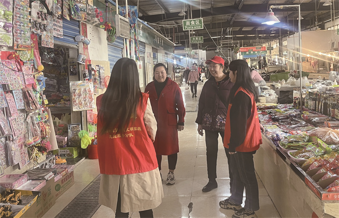 “大姐,你这些东西摆出来挤占了通道。”近日,马鞍街道玉屏社区志愿者祖小童、乐小漩来到玉屏农贸市场对经营户进行文明劝导。马鞍社区的党员志愿者也走街串巷劝导商贩不要占道经营,倪峰社区、和平社区的志愿者则在十字路口引导市民文明出行。