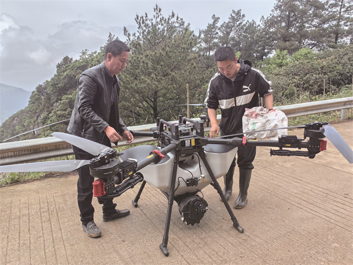 “嗡嗡嗡……”随着无人机螺旋桨加速旋转,70公斤乌桕籽(乌桕树种子)被运送至距离地面近20米的设定地点。在云雾缭绕的乌江峡谷上,只见播撒仓口自动打开,乌桕籽如水雾般均匀播撒。