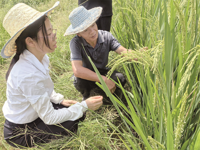 眼下,水稻进入扬花灌浆关键时期。连日来,涪陵区农业技术推广站高级农艺师刘芳深入田间地头,把管护技术送到粮农手中,为今年水稻丰产丰收打好基础。