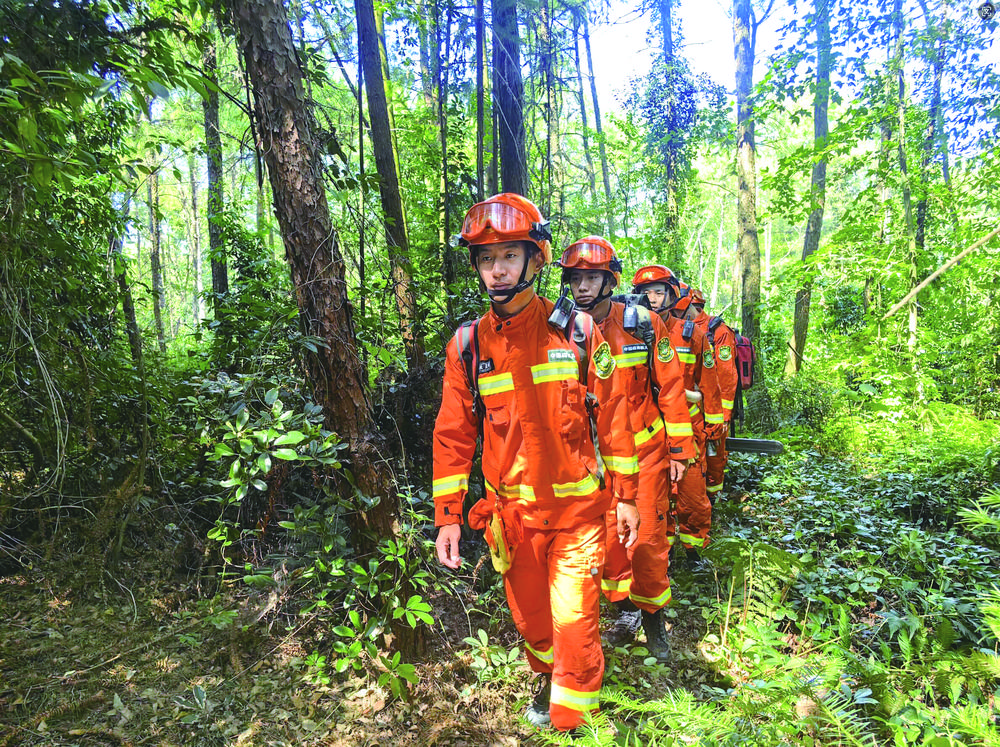 连日来,高温连晴让森林草原火险等级居高不下。在涪陵区黄草山森林公园,涪陵区国有林场森林消防专业队队员持续开展带装巡护,织密森林草原“防火网”,全力守护林区安全。