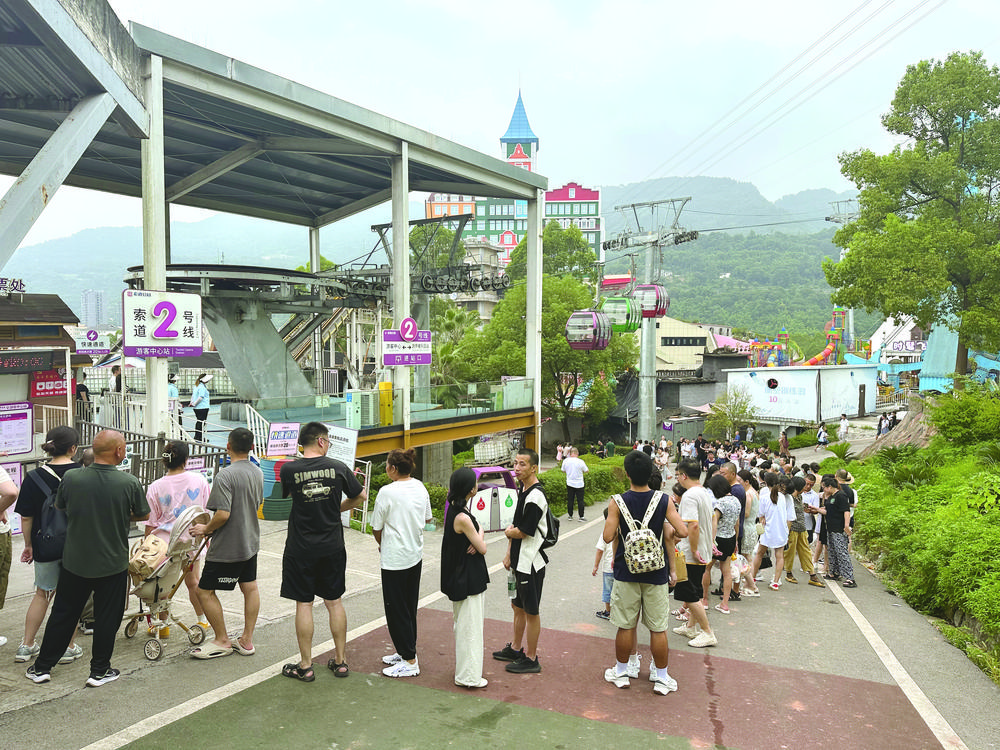 游客在蔺市美心红酒小镇景区索道2号线自觉排队 美心红酒小镇景区供图