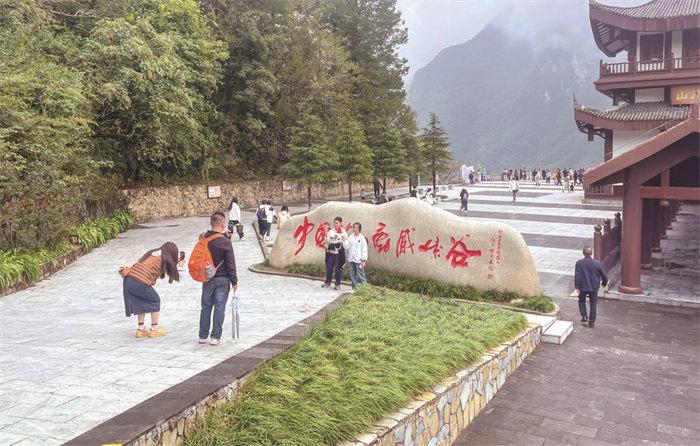 涪陵推进武陵山片区旅游提升,今年刚创建为国家5A级景区的武陵山大裂谷,在这个假期也是大放异彩,接待游客5.88万人次,同比增长48%。在这里,飘扬的五星红旗营造出浓浓的节日氛围,五湖四海的游客纷纷前来打卡,赏绝壁裂缝、看民俗表演。来自南京的程女士告诉记者,她和家人从南京一路游三峡过来,正好遇见云雾缭绕的大裂谷,感觉太仙了,不虚此行。“挺出乎意料,没想到这么好看。”程女士说。