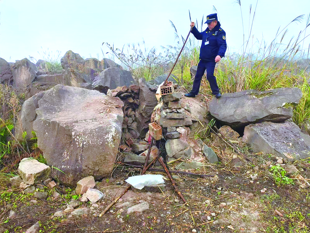 执法人员清理扑灭违规熏制点火源 敖华林 摄
