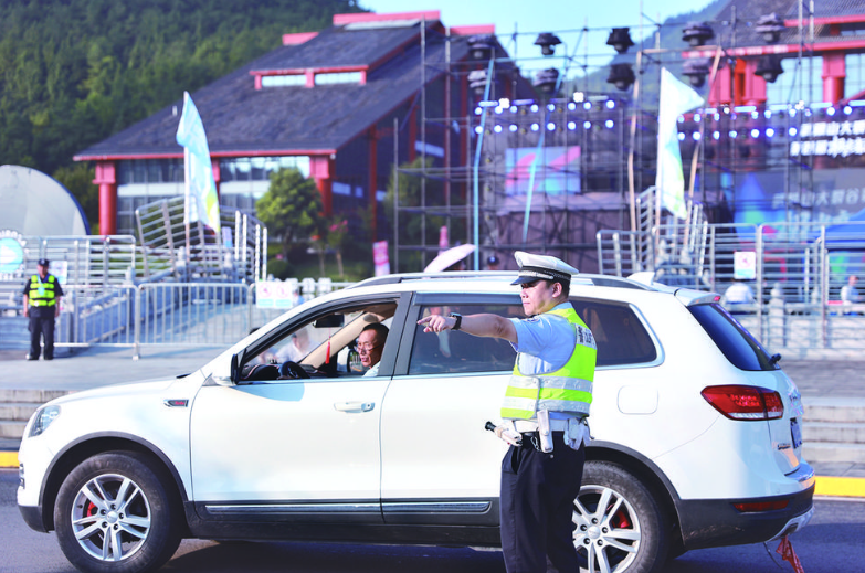 民警在避暑景区路口维护交通秩序