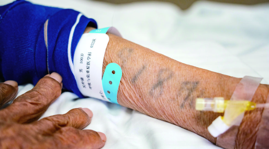 来到病床前,谭培文凑近况仲庸耳边说话:“今天好点了没?”况仲庸握住谭培文的手,频频点头。老人手臂上“918耻”的刺青依然清晰。九一八事变后,他和两位同学一起刻字、入伍、上战场,最后只有他一人回来了。