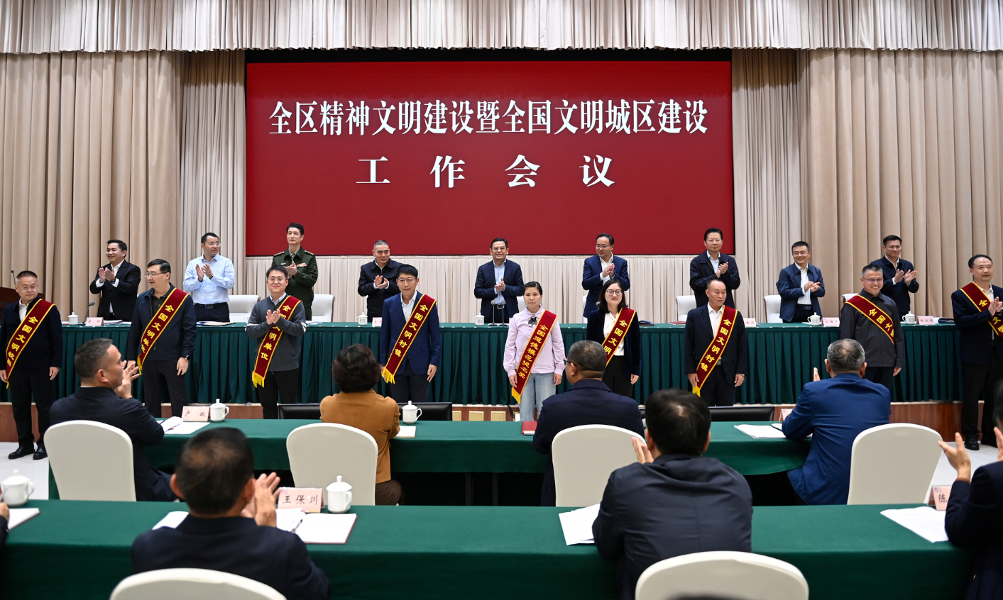 黎勇向受到表彰的先进典型表示祝贺,向长期奋战在精神文明建设战线上的同志们表示感谢。黎勇说,以文化人、以文育人,不断丰富人民精神世界,促进人的全面发展,是一个润物无声、循序渐进的过程。要高举思想旗帜,把准精神文明建设“风向标”。全面贯彻党的二十大和二十届历次全会精神,深学笃行习近平文化思想,深入贯彻习近平总书记对精神文明建设工作作出的重要指示精神,深刻领会精神文明建设的战略地位、根本目标、核心任务和实践路径,对标落实市委要求,主动扛起责任使命,统筹推动文明培育、文明实践、文明创建,持续巩固全国文明城区创建成果,加快实现从“创建文明城市”向“建设城市文明”转变。