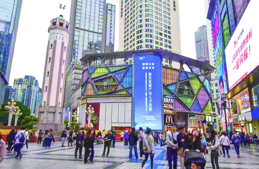 自11月10日起,重庆主城与涪陵城区的多个核心地标已被大会主题元素点亮。渝中区解放碑金鹰财富中心、两路口中华广场、两江新区观音桥新世界百货、中山四路中山文化产业园等地的LED屏上,“绿色低碳 智创未来”主题宣传海报全面上线,以醒目视觉向过往人群传递大会核心主张与强劲活力。