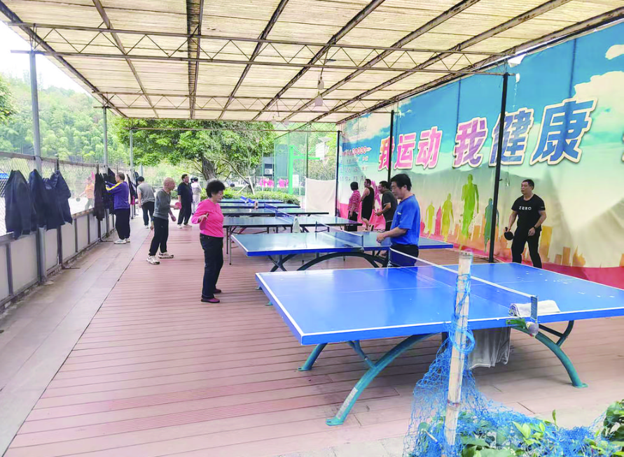 市民在涪陵白鹤森林公园乒乓球场打乒乓