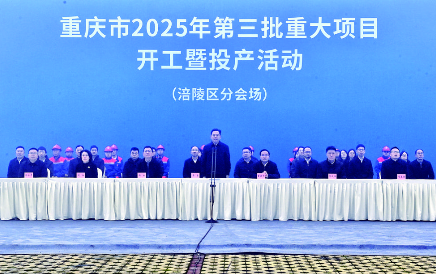 11月26日,重庆市2025年第三批重大项目开工暨投产活动举行,涪陵区设分会场。本次重大项目开工暨投产活动中,涪陵区集中开工、竣工投产重大项目共8个、总投资167亿元。