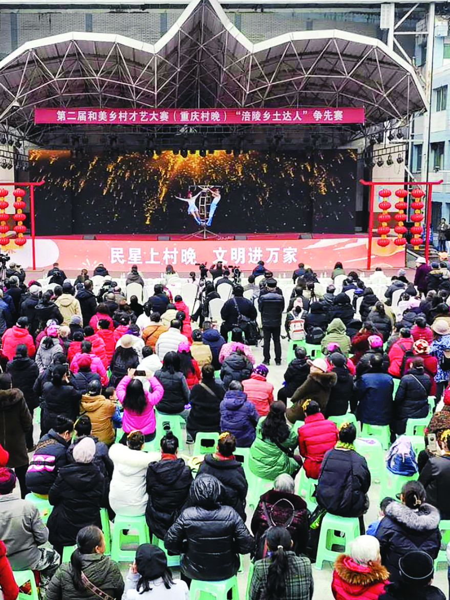 1月13日,第二届和美乡村才艺大赛(重庆村晚)“涪陵乡土达人”争先赛在涪陵广场举行,活动主题为“民星上村晚 文明进万家”。涪陵区委常委、宣传部部长吴辉出席并致辞,区人大常委会副主任简波、区政协副主席陈圣玲、市新时代文明实践指导中心主任李金满及副主任刘成龙参加活动。