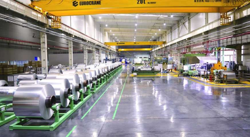 二期项目引入效率更高的“1+1+4”热连轧机、高速冷连轧机及各类配套剪切机等铝加工设备,建设热轧车间、冷轧车间、智能化物料库等系列厂房,打造绿色智能生产线。
