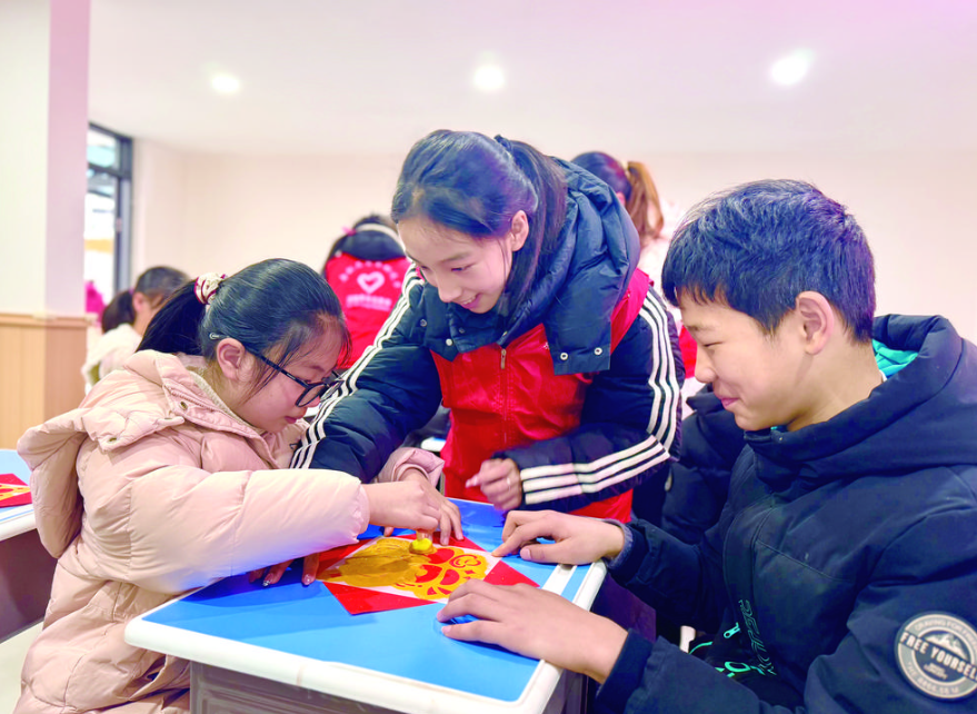 五年级的小朋友黄闻翔还是第一次来上托管班,他笑眯眯地说:“在这里我学会了做手工、学会了下象棋,以前放寒假的时候都是一个人在家,现在认识了这么多新朋友,每天都玩得很开心!”