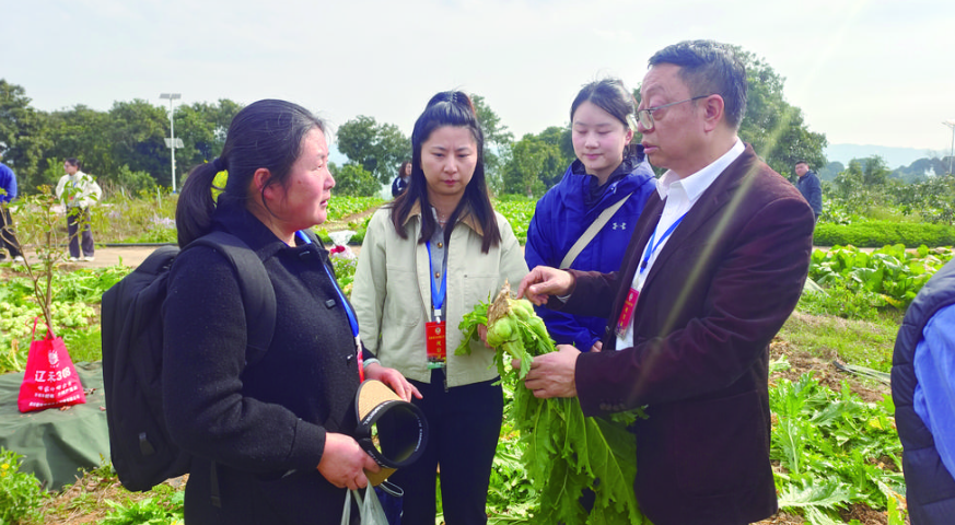 “随手拔一个菜头,皮薄筋少、品质脆嫩,含水量低、空心率少,无论是鲜食还是加工,都属上乘。”调研现场,范永红随手拿起一个刚采收的“甬榨5号”青菜头,用力掰开向大家展示。他从事榨菜研究近四十年,见证了涪陵榨菜品种的迭代升级,对此次极晚熟品种的试种成果赞不绝口。