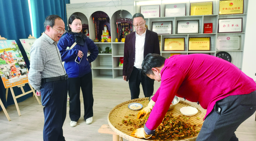 调研组成员观摩彭婆婆风脱水酱香榨菜传统手工制作技艺