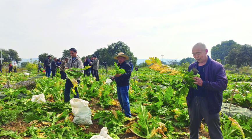 3月13日,涪陵区供销合作社联合社(以下简称“区供销合作社”)组织榨菜专家、区政协为农服务委员工作室政协委员、区供销合作社职工、基层供销社负责人及志愿者组成调研组,走进南沱镇坪西岛、江北街道二渡村、马武镇民协村三地的极晚熟青菜头试验田,实地察看极晚熟青菜头的生长、收获情况,详细询问品种特性、种植技术及产量预估,细致记录试种过程中的经验与问题,为后续规模化推广种植收集第一手翔实资料。