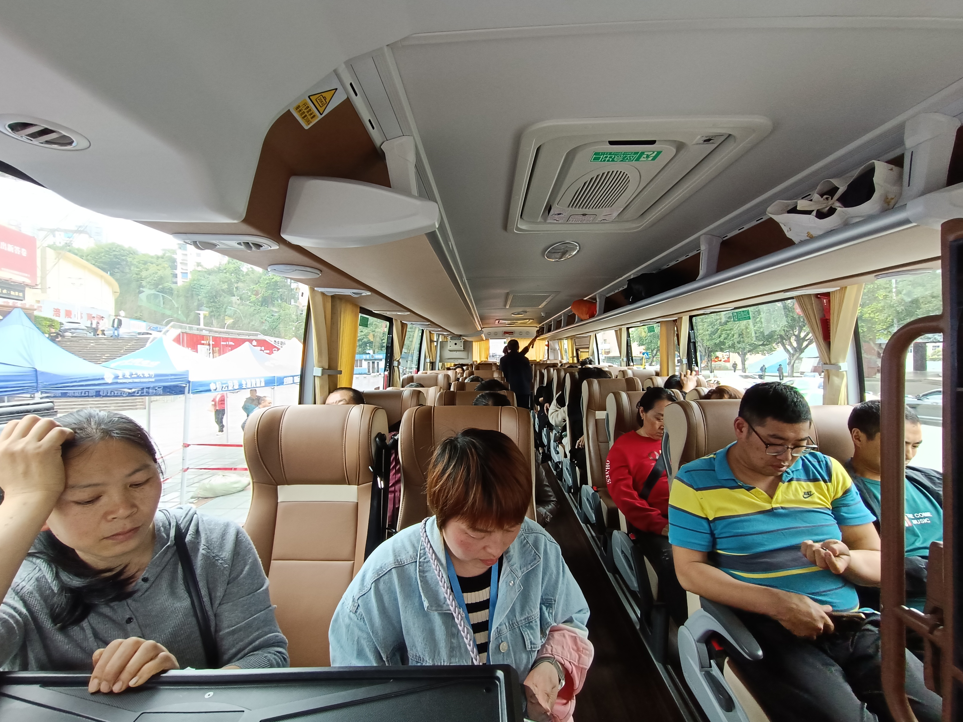 旅客在涪陵体育场渝涪便民快巴候车亭乘车出行
