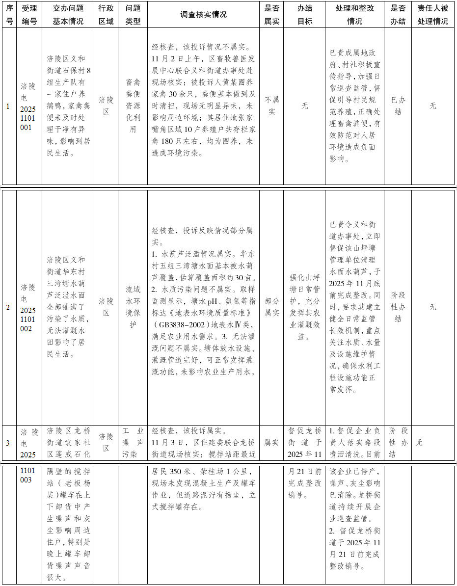 重庆市第二轮第三批第四生态环境保护督察组群众信访举报转办和边督边改公开情况一览表 (第5批 2025年11月1日)