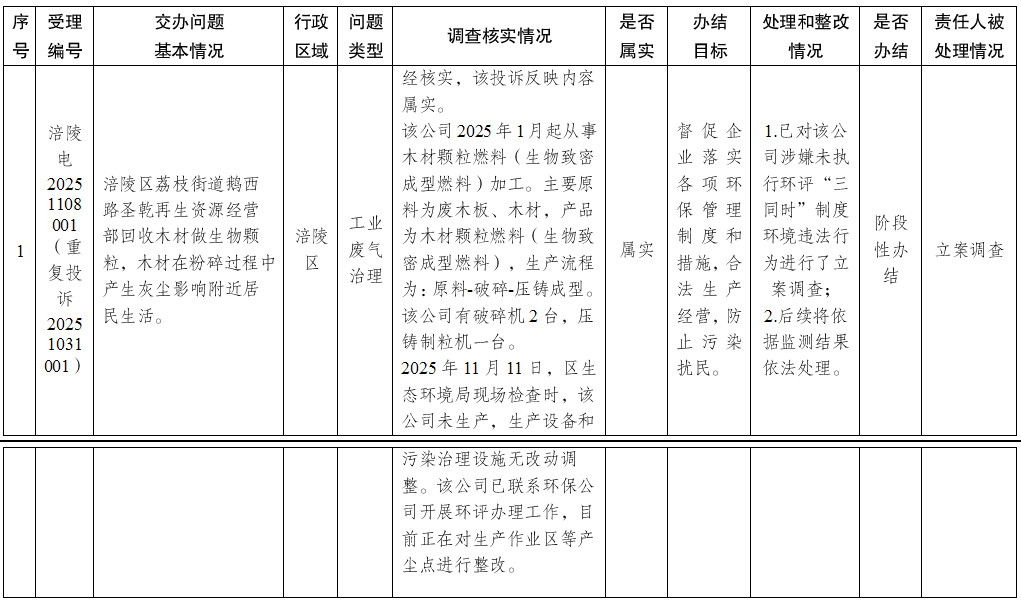 重庆市第二轮第三批第四生态环境保护督察组群众信访举报转办和边督边改公开情况一览表 (第11批 2025年11月8日)