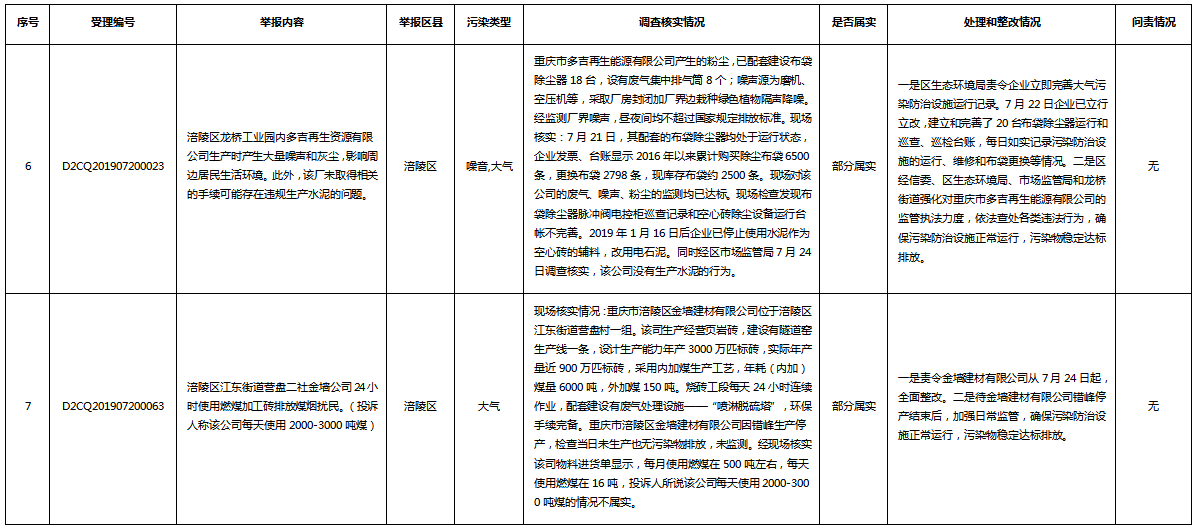 2019年7月20日,涪陵区收到中央第四生态环境保护督察组交办的生态环境问题2件。现将处理和整改结果向社会公开。